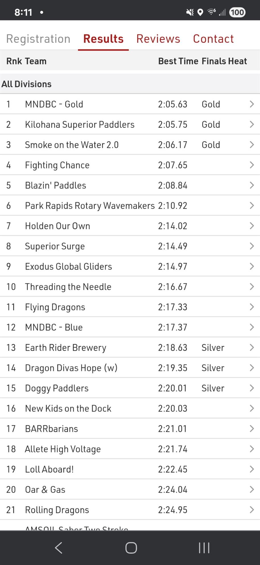 I want you all to remember that number because it is both the number of seconds we shaved off in the second heat as well as the number of places we jumped in the process. If this is your first year paddling, we just did something NOBODY does. Teams don't just jump from the Bronze division to the Gold division willy nilly. They don't just leapfrog HALF of all teams at the festival in their second attempt. And they certainly don't take eighteen seconds off their time in a competition where tenths of a second often separates places. I've never been so excited to learn we'd thrown ourselves out of medal contention as I was on Saturday.